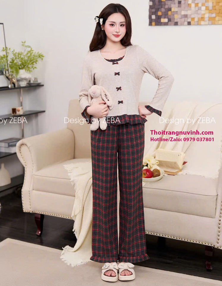 Áo cotton lông thỏ, quần thô kate dày dặn ấm không nhăn nhàu